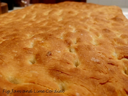 That is a huge focaccia! I take bread, usually my turkish, which is pretty much like focaccia. I’m well known for my lemon meringue pie as well and taking it is a surefire way to get my husband to come to a dinner that he’s not too keen to go to! I’ve been known to hold the pie on my lap, trying to keep it in one piece on the potholed local roads!