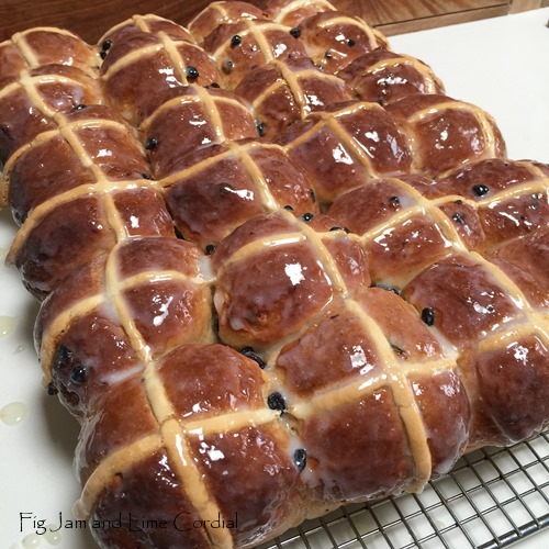 Guess what I used to glaze my hot cross buns with – Celia’s apple jelly. I warmed it in the microwave and brushed it on. It was sensational. I also made my hot cross buns choc chip as my kids had friends coming over who don’t like dried fruit. I must say that despite being against the concept they were very nice!
