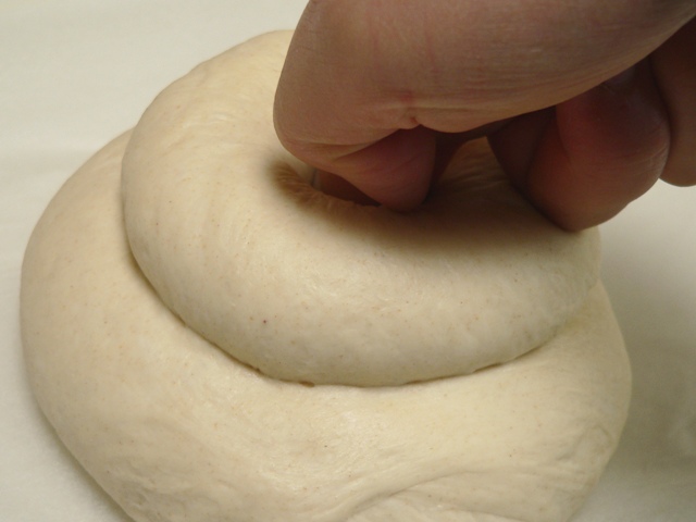 After I’d assembled the cottage, but before the final prove, I stuck my fingers into the middle of the loaf, right down to the bottom, to “weld” the two layers of dough together.