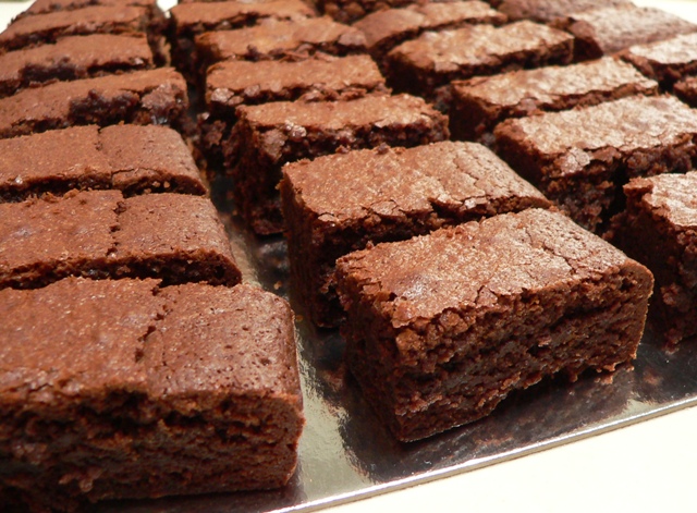 Nick Malgieri’s Supernatural Brownies (pictured above) are very easy to make, and perfect for feeding a crowd. The two batches I made cut into over ninety 2½cm x 5cm (1″ x 2″) bars. I tweaked the methodology a little to simplify it even further.