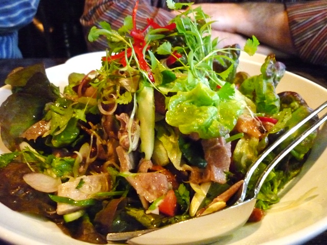…Thai Roast Duck Salad, in a palm sugar, chilli and lime dressing…