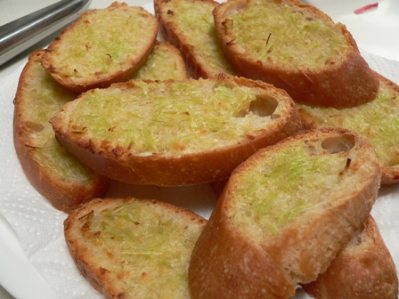 Dan’s garlic bread not too strong at all, though it is an elaborate process. He took loads of photos and rewrote the method here http://www.danlepard.com/forum/viewtopic.php?t=924&highlight=garlic+bread. The blanching of the whole cloves before you cook the garlic seems to do the magic. Generally if you cook garlic whole it is less pungent than if you chop it. Ditto onions.