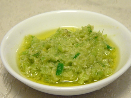 I turned the stems into garlic scape pesto by simply blitzing them in the food processor with olive oil, pine nuts and grated parmesan cheese.