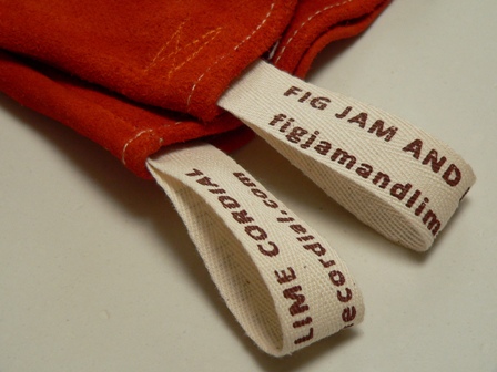 …AND a pair of my FJALC welding gloves, the best thing ever for pulling hot trays of cookies out of the oven. They’re a gorgeously bright orange leather, and sport Fig Jam and Lime Cordial hanging loops.