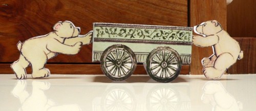 And just look at how cute these little guys are – polar bears helping Santa with his toy trailer!