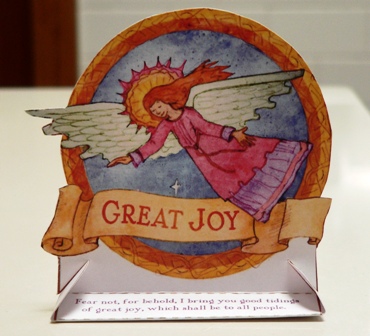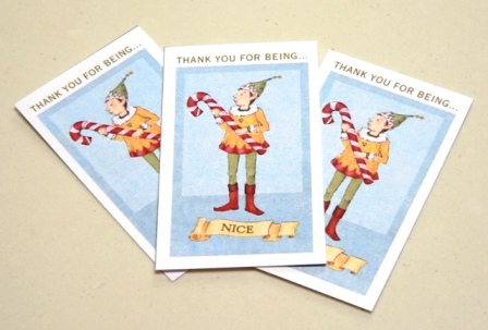 There are scores of downloadable Christmas cards, stationary and gift boxes, including the small Candy Cane Bags pictured above and the little Elf gift tags and Angel card below.