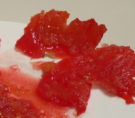 What you see above is the product of two fairly firm Roma tomatoes and literally just a minute’s work.