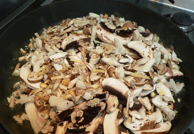 Fortunately, there are cheaper varieties available at Flemington Markets, and I’ll usually buy Swiss Brown or large white Button mushrooms to pad out the more expensive exotics. Last week the Swiss Browns were only $5/kg, making them very affordable indeed! If dollars are a consideration, this recipe will work just as well with regular mushrooms – the fancier ones just add extra zing.
