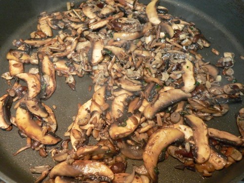 2. Once the butter is melted, add a couple of cloves of chopped garlic and stir briefly. Don’t brown the garlic at this stage, or it will burn by the time the mushrooms are cooked.