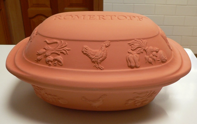 Reminds me (sadly) that my parents gave me their Romertopf when they were moving out of their house and I somehow didn’t pack it up properly and it broke during the flight to Sydney. Will have to invest in another one.