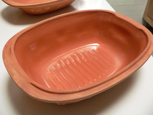 …but the glaze on the inside remains perfect. We take care not to scratch it with metal implements, and it rewards us by cleaning up a treat in the dishwasher. The pots we get in Australia come directly from Germany, whereas the ones available in the US are made in Mexico and I don’t believe they have the interior glazing. Edit 2014: they’re now selling the glazed German made models in the US: http://romertopfusa.com/