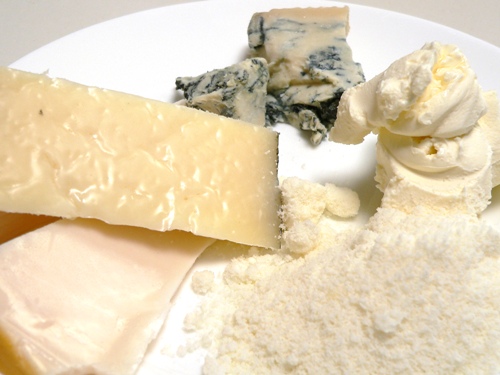 - 250g assorted cheeses – in my fridge, I had Gorgonzola Dolce, grated Parmesan, Manchego, Picasso sheeps’ cheese and some Philadelphia cream cheese. Use whatever you have, although I’d be inclined to avoid anything with uninvited mould growing on it.