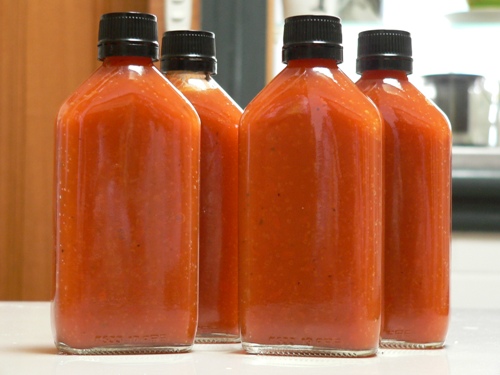 This was so delicious that I had it on pizza tonight, before the bottles had even cooled. It’s quite reminiscent of Mexican style sauces, with a clean, pure taste that allows the chilli flavour to shine through. As soon as the next crop of chillies are ripe, I’ll be making this again. Thanks, Choclette!