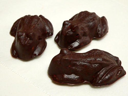 Not at all, they are repulsive! And a major, major pest here in Australia. I originally found the mould on the internet and thought they’d be cute little frogs, but they turned out to be big ugly beasts – more like cane toads than cute little choccy frogs. So of course I had to make them then…hehe…