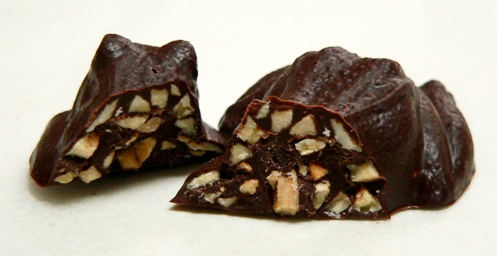 Here’s the final outcome – sweet roasted almond slivers encased in a 63% cacao dark blend. I’m in chocolate heaven…