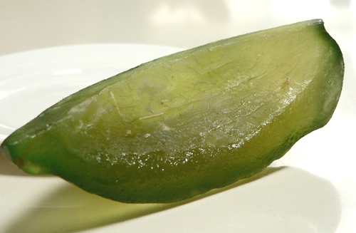 …I have a wedge of cedro, candied peel from Italy. I’d never seen anything like it, so I couldn’t resist picking up a slice when I was in the cheese shop last weekend. A cedro is a large citrus fruit, similar to a giant lemon, with a very thick pith. The candied version is quite sweet, and commonly used in panettone and Italian desserts.