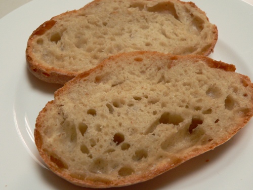 Sally, I’ve uploaded a crumb shot for you. The rolls have a lovely crunchy crust (but not too hard) and the crumb is holey and chewy.