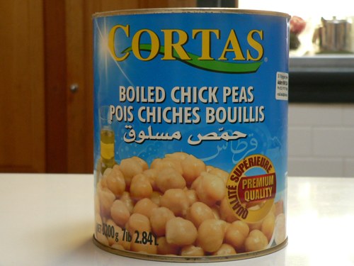 I find it hard to resist a bargain (the avocado doesn’t fall far from the tree), so when I saw these enormous cans of chickpeas on sale at Harkola a few months ago, I had to buy one. From memory, we paid a tiny $3.50 for this 3.2kg can!