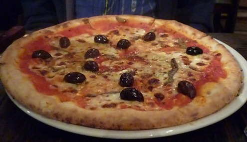 Small Man demolished a bowl of fries and an entire pizza – this one had a thin, crispy base, and was topped with all of his favourite ingredients – olives, anchovies, tomato, cheese and oregano. I told him Tony had created that pizza just for him…