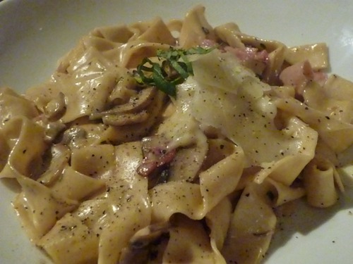 Big Boy had the handmade pappardelle with pancetta and mushrooms in a white wine and cream sauce, before eating half of my ribs…