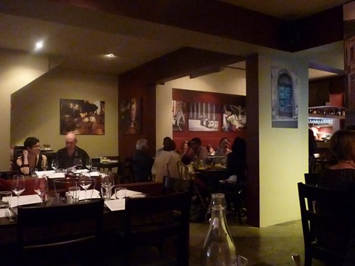 The restaurant has a wonderful, welcoming ambience – gently lit, adorned with photos of Italy, with comfortable seating and earthy, rough-hewn tables. It’s a very elegant yet easy room to settle into.