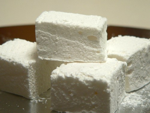 These moreish morsels only have four ingredients – sugar, gelatine, vanilla extract and egg white. The texture is reminiscent of a firm meringue pie topping – quite different from the commercial versions which are bouncy and rubbery (and made in a very different way). These have a lovely old world charm to them.