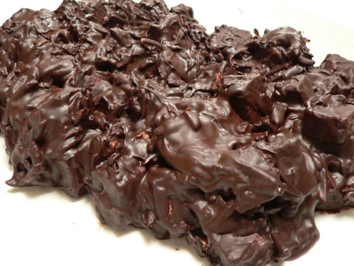 Of course, once we had homemade marshmallows, we had to make dark chocolate rocky road! We used 500g of tempered dark Belgian chocolate, 125g slivered almonds and 200g of homemade marshmallows, chopped into cubes. It’s wickedly good!