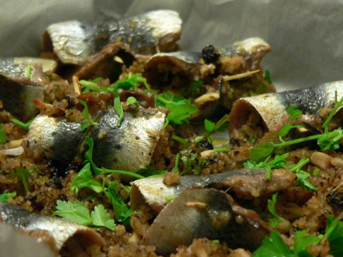 - 8 fresh sardines, scaled, boned and butterflied (I used a tray of sardine fillets)