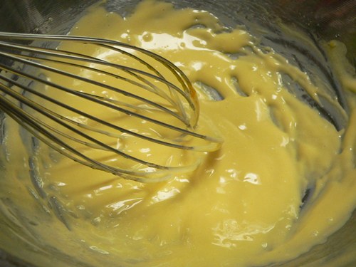 …before gradually adding grapeseed oil, a few drops at a time to begin with, and in slurps as the mixture thickened into a lush mayonnaise…