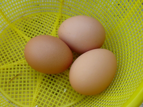 I’m guessing that corn-fed hens produce rich yellow yolks.