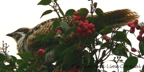 Chef, we’ve been collecting as many lilly pilly berries as we can without breaking our necks. Of course, that leaves more than half the tree for the birds and other wildlife! We’ve never had such prolific fruiting. As I mentioned to Manuela, we usually making lilly pilly jelly with it, but this year Pete has also made a very nice lilly pilly and mango jam, and our friend and neighbour Maude turned it into lovely cordial to go with her Soda Stream.