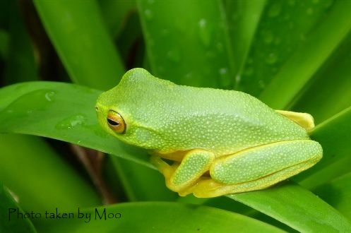 Moo, who is a marine biologist but not a herpetologist, believes this is a small dainty tree frog, camouflaged to its surroundings. Frogs can be notoriously difficult to identify, so if there are any herpetologists out there, please let us know if that’s not right.