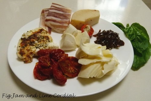There were slices of pancetta flat, fresh and matured mozzarella, sundried tomato, baked ricotta, fig paste, a few basil leaves and a solitary stuffed chilli pepper…