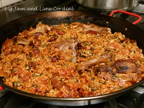 I bought a huge paella pan a couple of years ago too…and ashamed to say that I only used it once. Must find it in the garage and use it again. Mine just fit over the webber kettle bbq we have, so I cooked it outside over the coals. Probably needed a bit more trial and error to get the amount of heat right, etc. Fitting it in the oven is a really good solution. I would not even try with my pan and oven. Your oven is huge so your pan must be huge too if it only just fits in there!