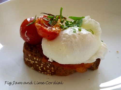 …followed by poached eggs and bacon on toast…