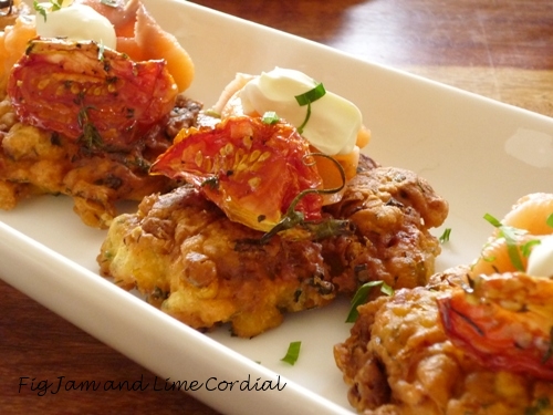 …and corn fritters served with smoked salmon and yoghurt.