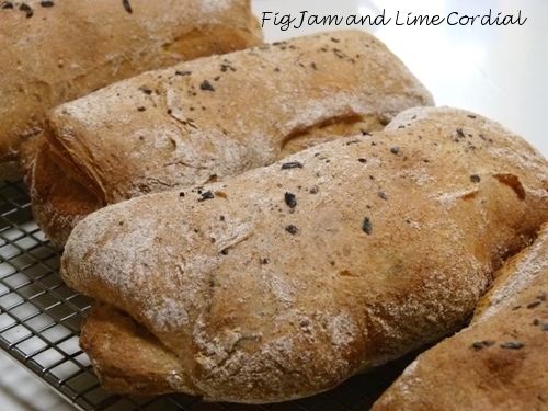 I indulged five grams of crushed crystals into yesterday’s batch of sourdough ciabatta – mixing some in with the dough itself and sprinkling the remainder on the top of the loaves prior to baking…