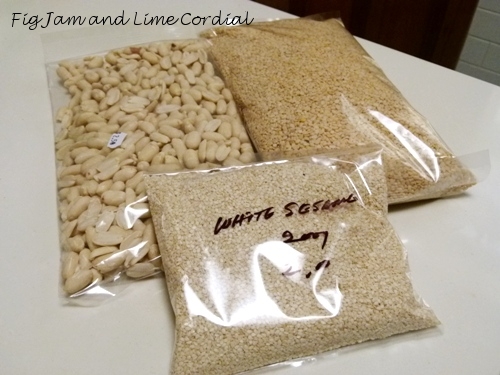 I bought raw peanuts and urud dal for lemon rice, and white sesame seed for dukka and bagels…