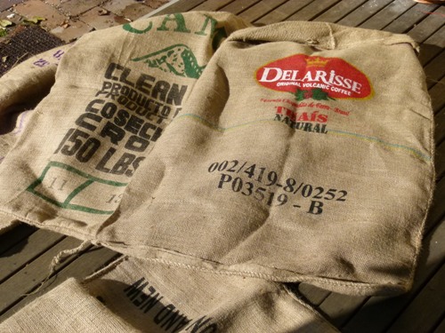 These used coffee sacks came from The Sydney Coffee Centre – they cost $3.50 each and all the money goes to the Starlight Foundation. I thought the ones we bought were pretty cool (they came from Brazil, Sally!)…