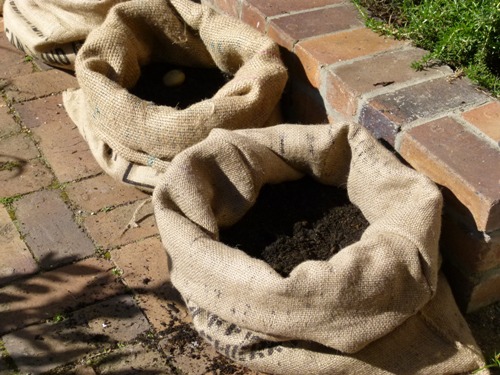 We’re trying to grow the potatoes in bags to give the soil a rest, as we grew them everywhere last year..