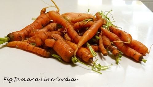As Mrs M’s soil was so fertile, he ended up with squillions of gnarly, skinny carrots. He’s brought over kilos for us – here are just a few of them…