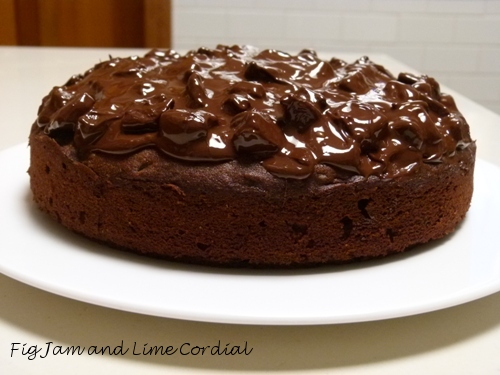 Jo, if you make the cake, do fiddle with the topping a bit – just melting chocolate and pouring it over the top was delicious, but it was hard to cut once it had set firm. Everyone loved it though!