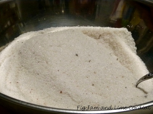 3. Add the seeds to the sugar, and rub in well with your impeccably clean fingertips, breaking up any fibrous tissue in the process. When the mixture is well combined, bury the empty pods into the sugar, cover the bowl with clingfilm and leave it overnight to infuse.