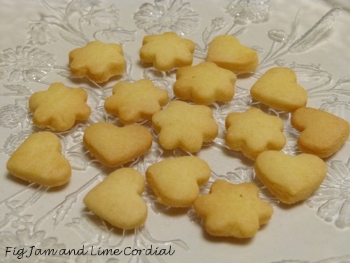 The shortbread recipe was a doddle to make in the food processor, although the rolling and cutting was fiddly, as the dough softened quickly when worked. I had to keep popping it into the fridge to firm up, so the whole process took a bit of time.