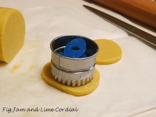 With a sharp, thin knife, slice the dough into 4mm discs…