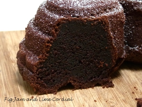 Finally, and I’m still not sure whether this is a pro or a con, the batter is absolutely to die for. It tastes like dark chocolate Irish cream with a little eggnog thrown in for good measure, and I had trouble ladling it into the pans rather than my mouth. Pete caught me with my head inside the mixing bowl, snuffling up the leftover mixture. “It wasn’t very becoming”, he told me later.