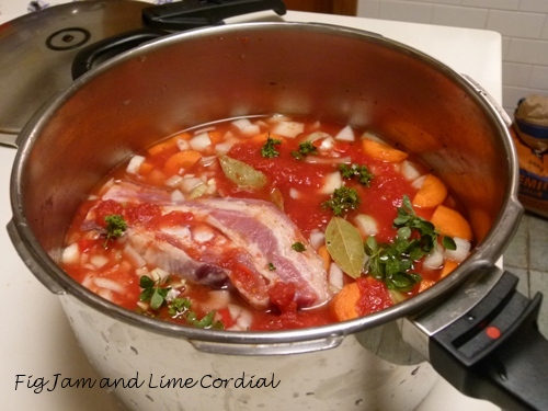 Celi, I’m going to try to use my pressure cooker more this year if I can, because it seems to be a very economical way to cook. The direct heat was on for only about half an hour, but the pot retained so much heat that when the pressure finally dissipated half an hour later, the soup was still boiling vigorously!