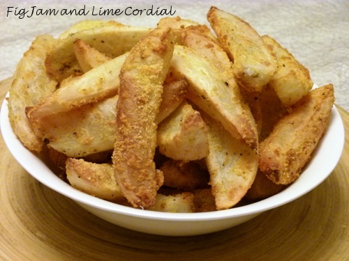 Inspired by Hugh Fearnley-Whittingstall’s spiced nut recipe, I’ve come up with a simple method for making fat free potato wedges…