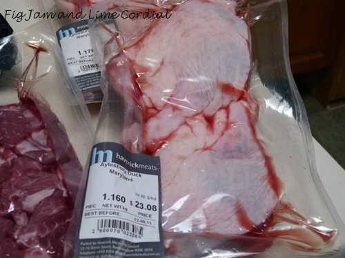 Instead of buying a whole duck these days, I purchase free range Thirlmere duck marylands (thigh and drumstick portion) from Haverick Meats…