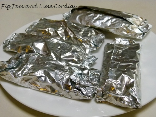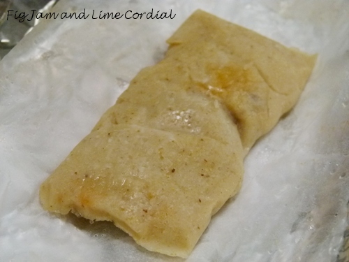 Thomasina Miers’ cookbook suggested that the tamales could be wrapped in parchment paper and foil instead of corn husks. This bit actually worked well, although I had no idea how much mixture was supposed to go into each one…